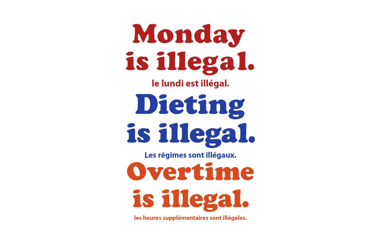 This 3 October, we’re dropping a cheeky new trio that turns everyday struggles into bold statements: Monday is illegal. Dieting is illegal. Overtime is illegal. Each tee pairs playful typography with a rebellious punchline, completed with a tongue-in-cheek French translation. It’s the perfect mix of humor and attitude — made for anyone who’s tired of routines, restrictions, and the grind.